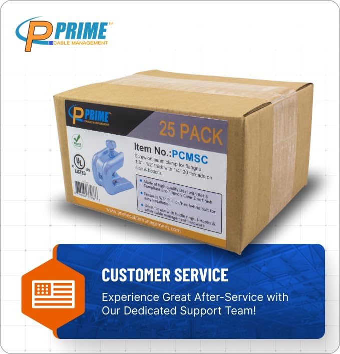 1/4″ x 20 Steel Beam Clamp with Hex and Philips Screw Head for Bridle Rings, J-Hooks, Threaded Rod, Electrical and Other Cable Management Hardware, Load Limit 75 lbs – 25 pcs