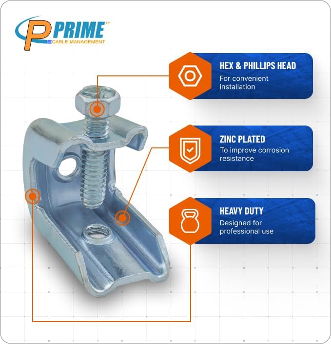 High quality zinc plated steel beam clamps are part of Prime Cable Management’s expanding portfolio of cable management products.