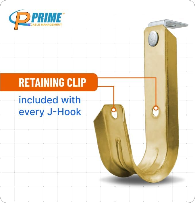 - J-Hook Sizes available are 3/4 inch, 1 5/16 inch and 2 inch wide. Supports most low voltage & sensitive data cable runs including Cat 5e, Cat 6, Cat 6a, Cat 7.