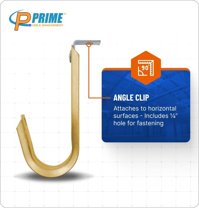 - The J-Hook / angle clip combination has been manufactured for heavy duty use – low voltage cable support – tested to hold up to 17lbs – up to 16 Cat 5e cables.